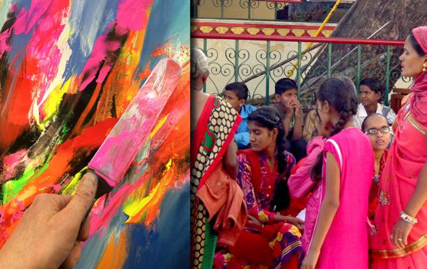 Pour Pierre Bellemare, le son, le rythme et l’expression artistique ne font qu’un. « Je vois la couleur lorsque j’entends la musique et ressens le rythme. » Devant sa toile, il est tel un chef d’orchestre à cette différence près que ce n’est pas lui qui crée les sons, mais ce sont eux qui le traversent et l’inspirent pour lui permettre de les immortaliser en formes et couleurs. Ses œuvres sont teintées de cette touche unique de calligraphie qu’il a déjà explorée au Japon. Gestuelle énergique et rythmée jusqu’au splashing final, technique par laquelle il projette littéralement sur la toile toute son énergie créatrice, obtenant ainsi des effets impossibles à produire autrement. D’ailleurs, la myriade de micro-éclaboussures multicolores constellant son atelier témoigne de l’intensité de cette chorégraphie.