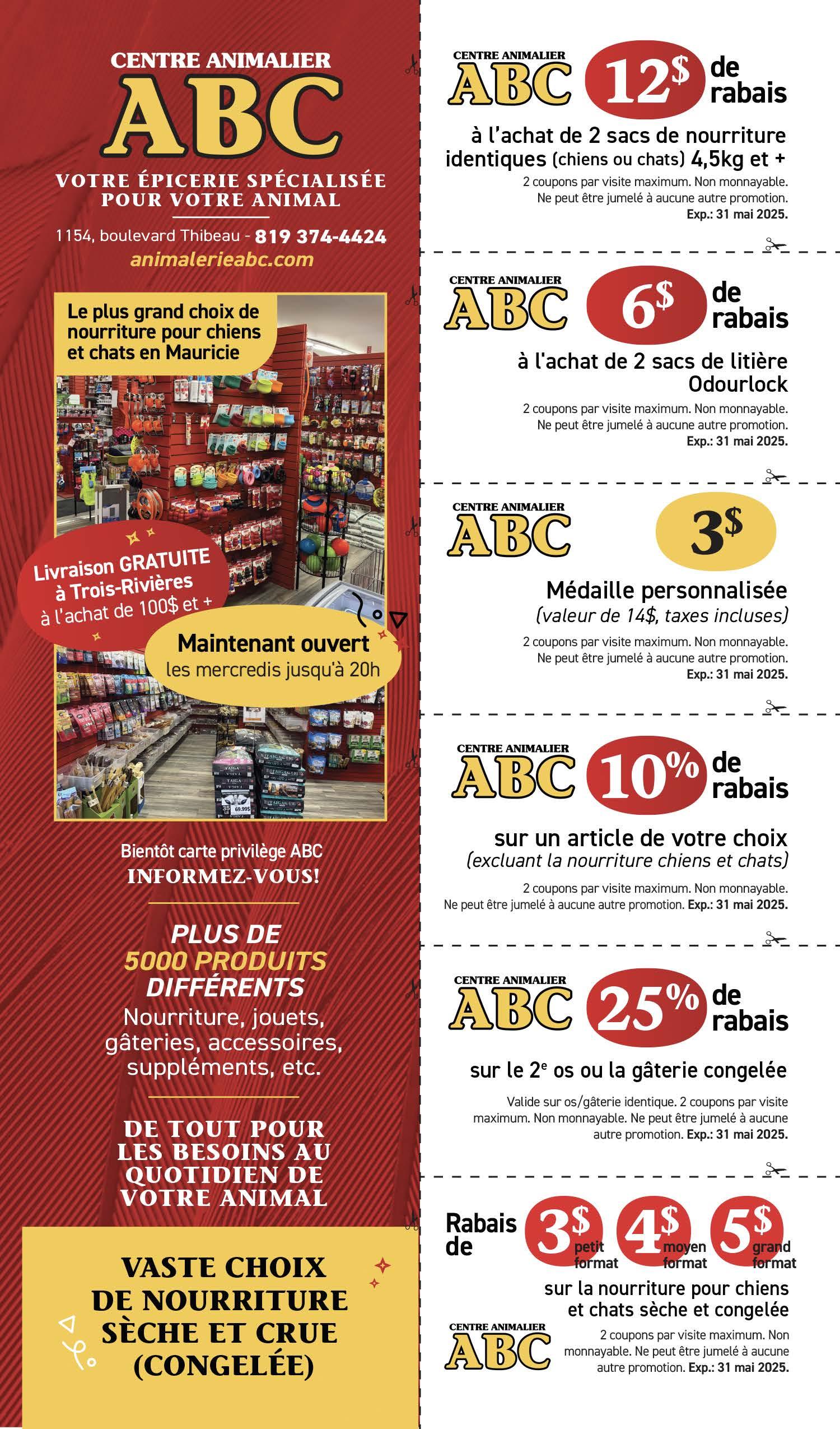 Valide uniquement à la succursale de Trois-Rivières sur présentation de ce coupon. 1 coupon par client. Non monnayable et non échangeable. Exp.: 31 mai 2025.