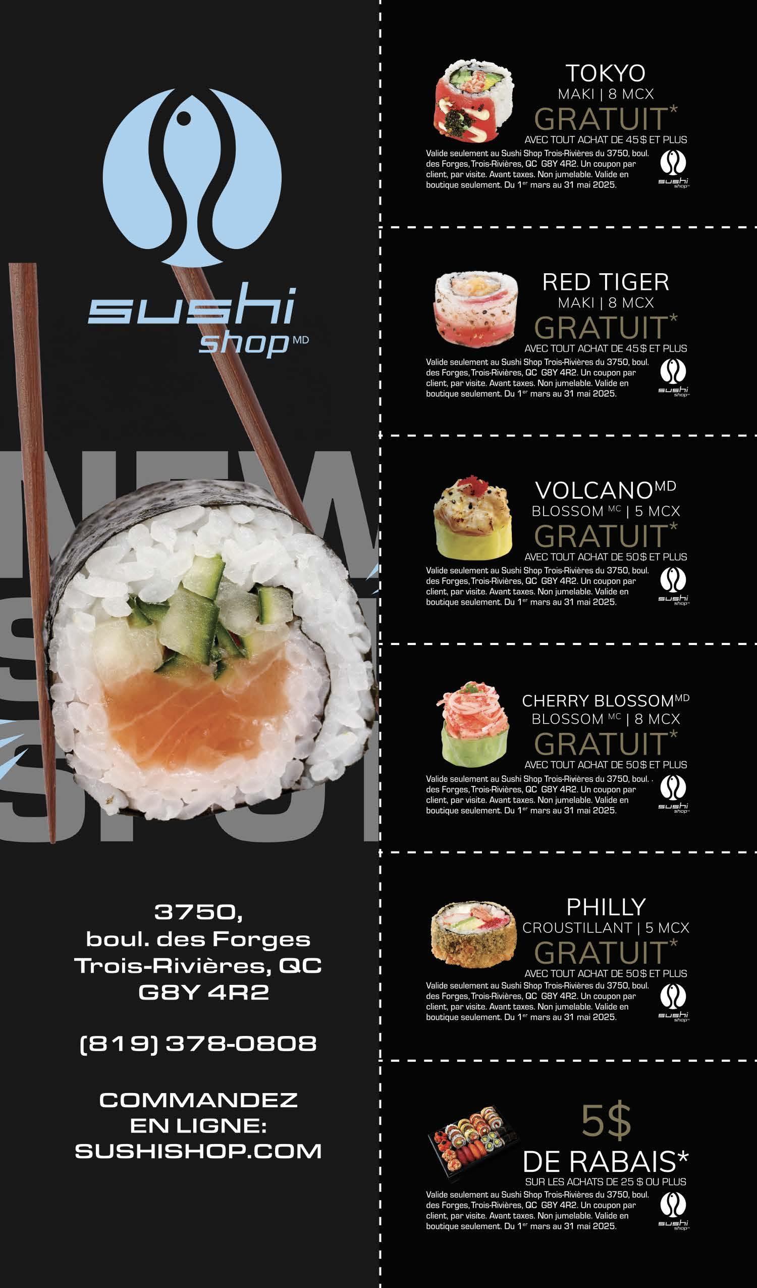 Valide uniquement à la succursale de Trois-Rivières sur présentation de ce coupon. 1 coupon par client. Non monnayable et non échangeable. Exp.: 31 mai 2025.