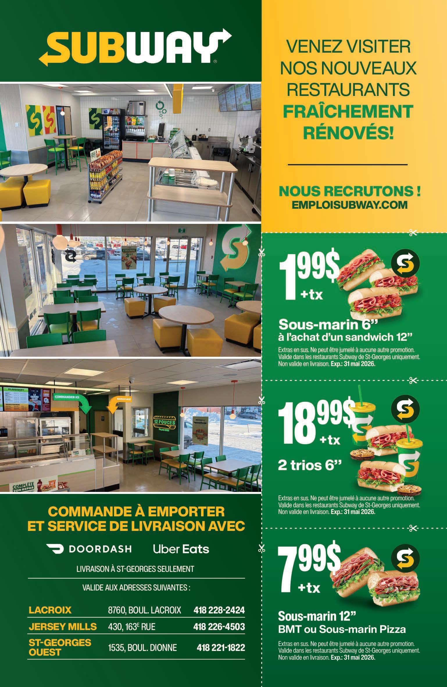 Limite d’un coupon par client. Non jumelable à d’autres promotions. Valide jusqu’au 31 mai 2026.