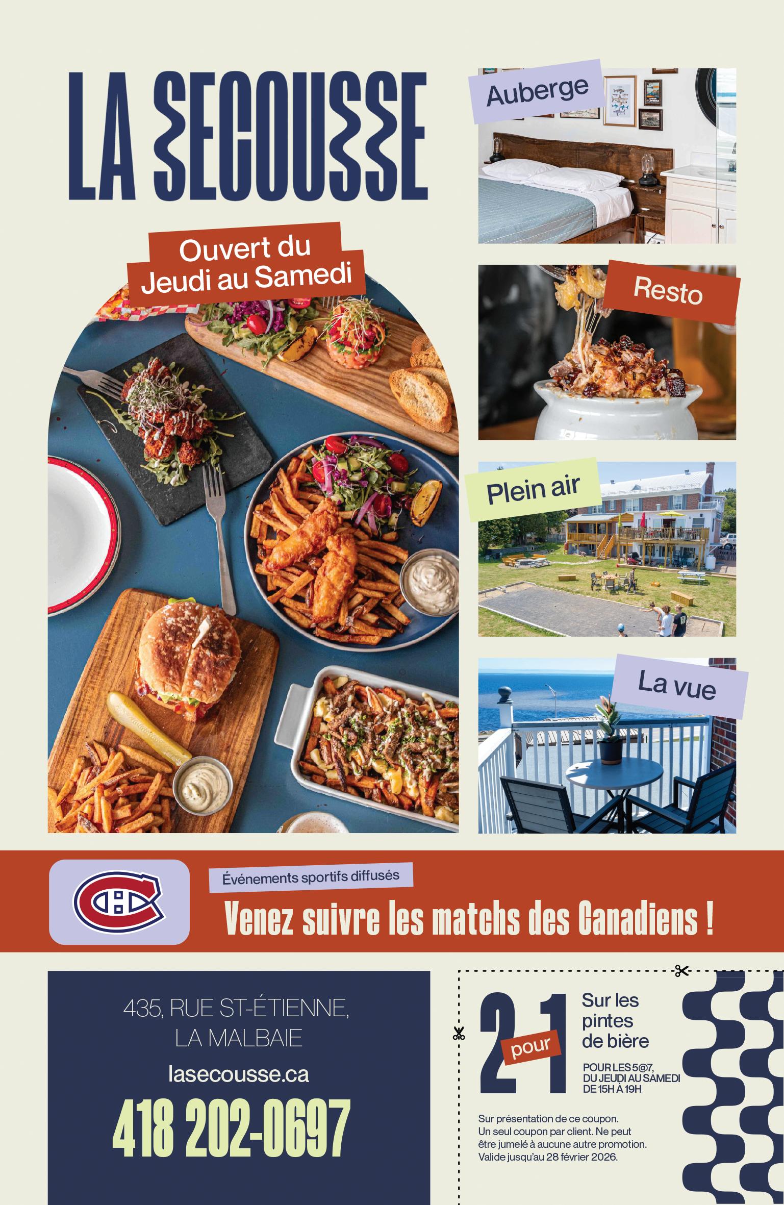 Sur présentation du coupon. Limite de un coupon par client. Non jumelable à d’autres promotions. Exp. : 28 février 2026.