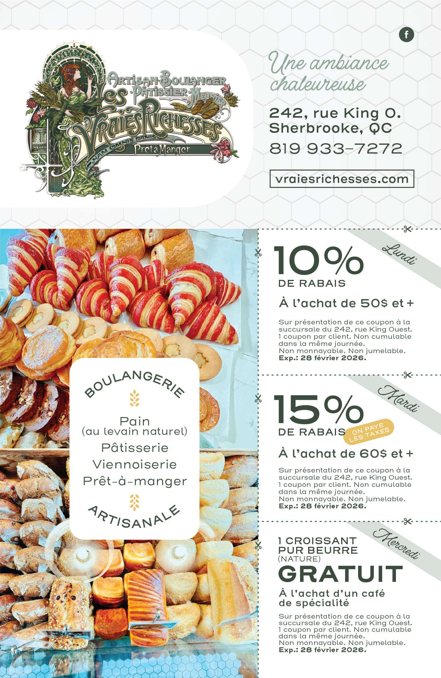 Coupon valide à la chocolaterie de Sherbrooke (1836, rue King Ouest) jusqu’au 28 février 2026.