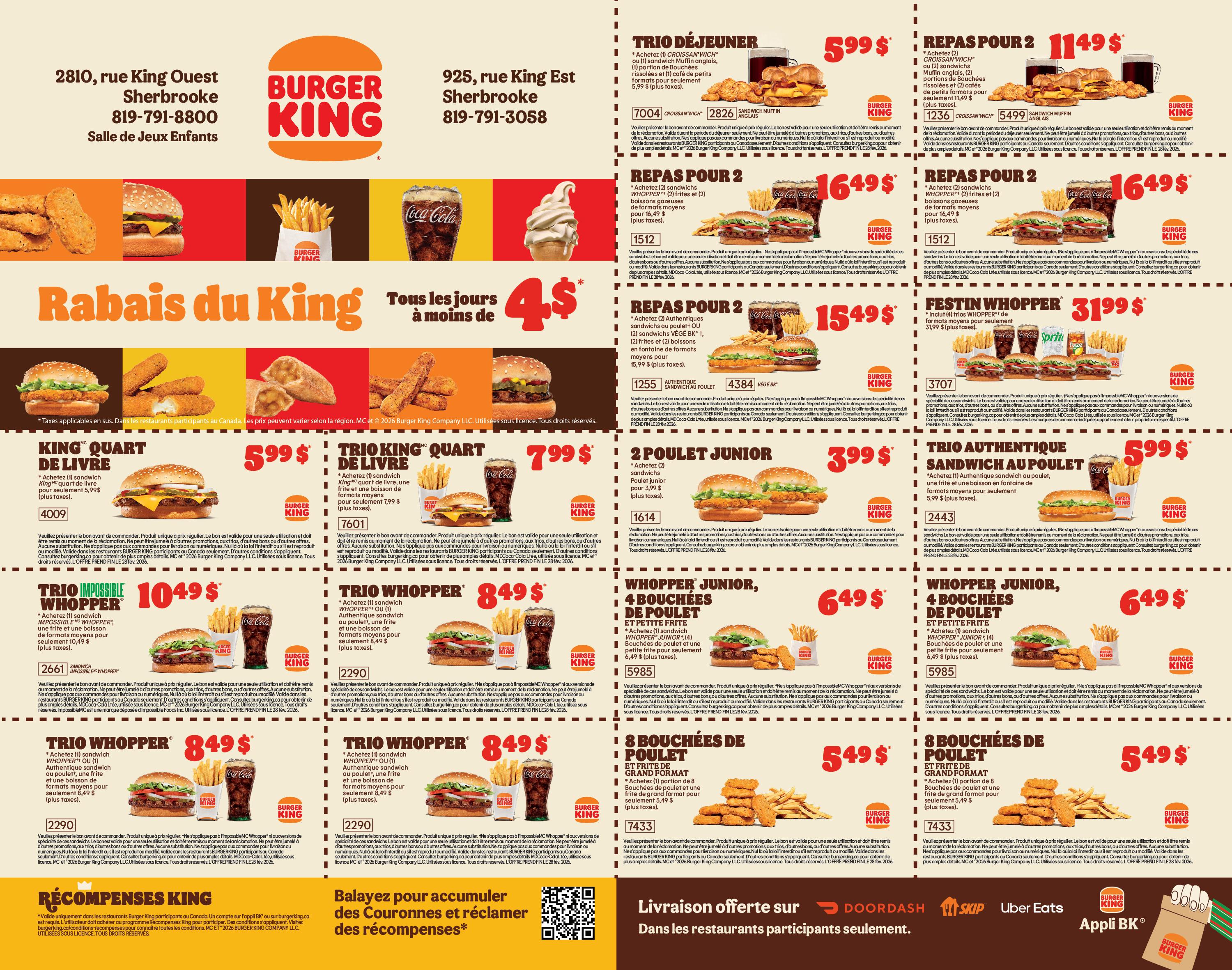 Un extra est applicable pour les versions éclatées et pour les saveurs de sorbet et/ou vanille à l'avoine. Coupon valide à la chocolaterie de Sherbrooke (1836, rue King Ouest) jusqu’au 28 février 2026.