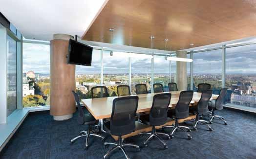 en ce qui a trait à l’aménagement des aires de travail, le deuxième étage se démarque par son centre de conférence et de formation. une des salles de conférence peut accueillir jusqu’à 150 personnes. « Dans la tour, à chaque étage, une salle de réunion a été aménagée. et partout dans l’édifice, de l’équipement à la fine pointe de la technologie a été installé pour répondre aux besoins du personnel. »