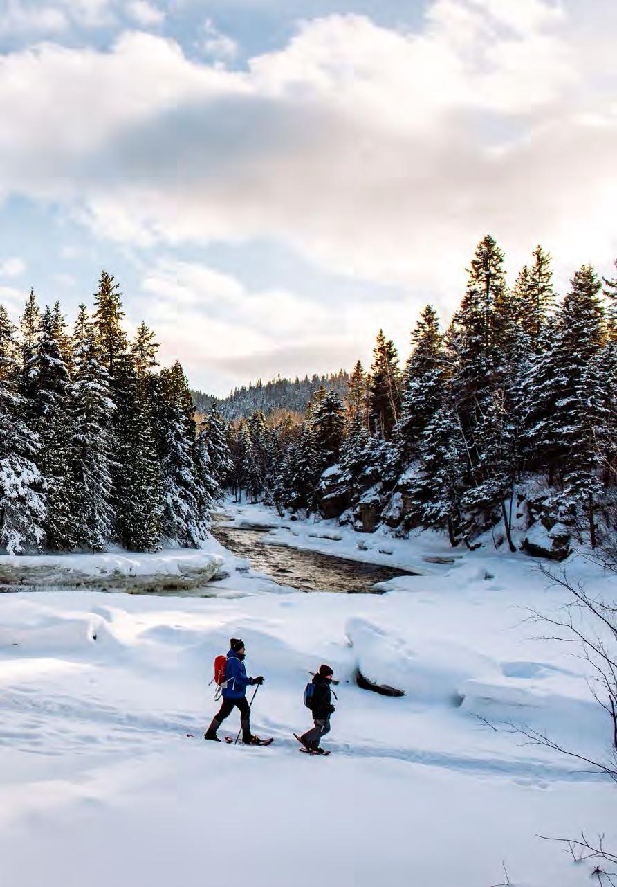 À l’ouest de la province, les Laurentides vous invitent sur leur terrain de jeu hivernal. Le village de MontTremblant brille de mille feux avec ses charmantes boutiques et ses rues pavées qui évoquent un conte de Noël. Au sud, la belle région de ChaudièreAppalaches, notamment la MRC de Bellechasse, offre des possibilités infinies d’activités de plein air. Prenez la direction du nord et découvrez le Saguenay-Lac-Saint-Jean, où la nature et le terroir invitent à l’émerveillement.