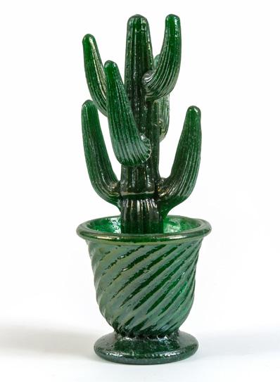 Una pianta grassa in vetro verde pulegoso. Altezza cm. 23.