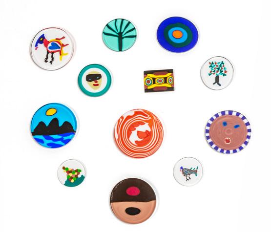 Cinque fermacarte a decoro fenicio, floreale e a reticello. Diametro cm. 8-9.