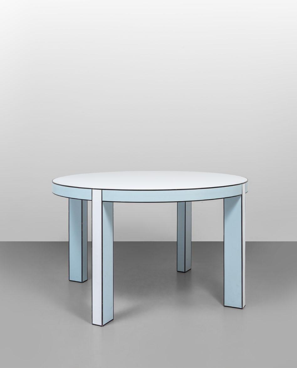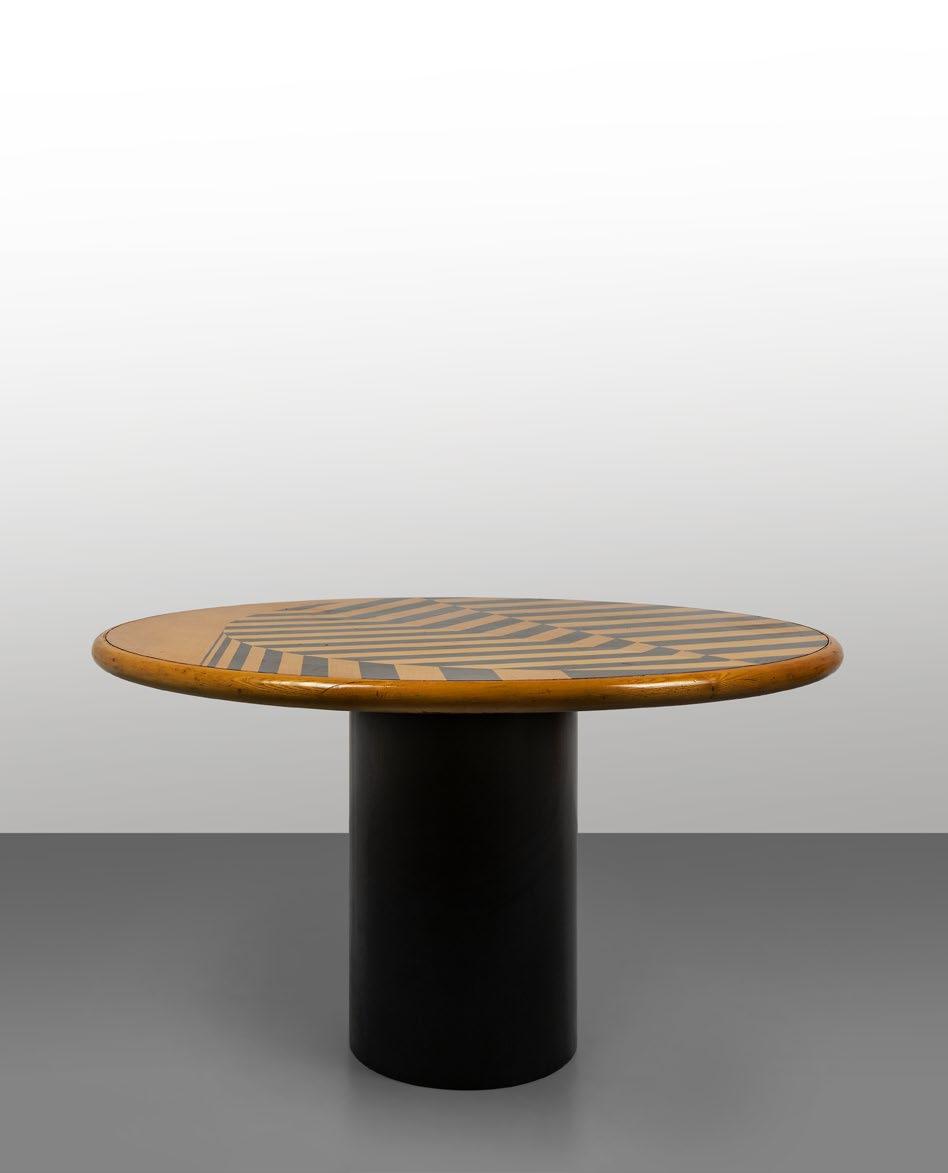 An 'Estense' dining table, 1992. Painted wood. Height 28.5, diameter 53.5 inches.