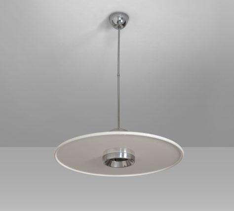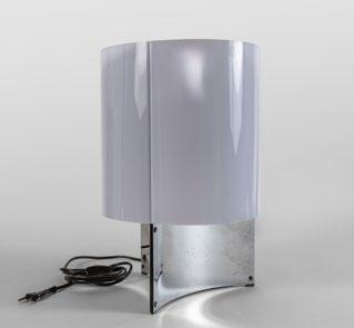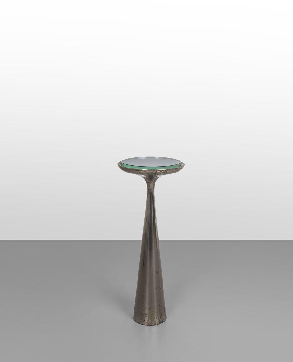Un tavolino ‘T1’, disegno 1949, edizione 1990. Acciaio cromato, cristallo retro verniciato. Altezza cm 45, diametro cm 26.