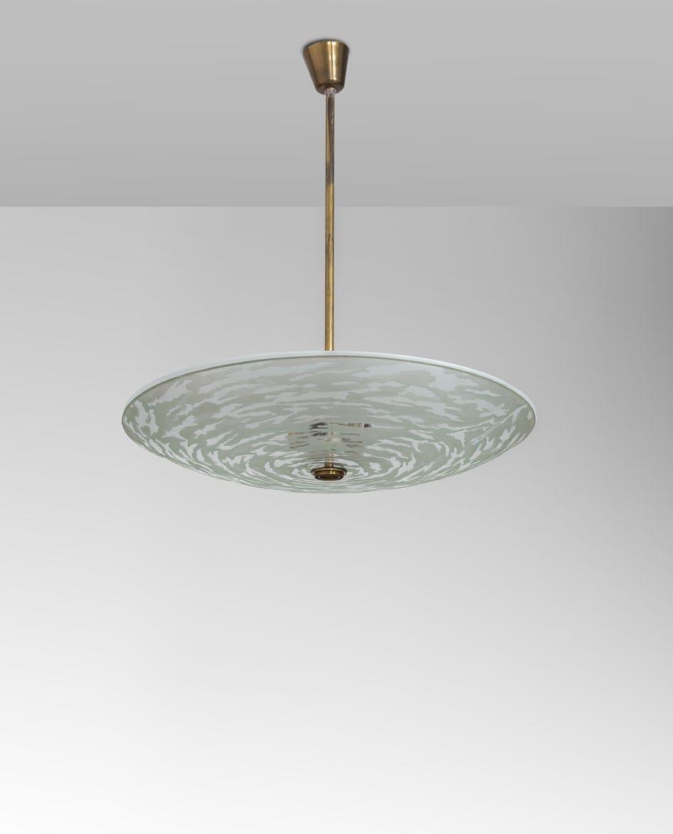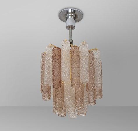 Cristallo colorato laminato, cristallo argentato. Marcato 'Glas Italia'.