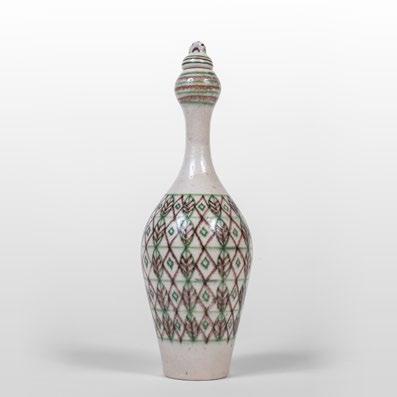 Ceramica formata al tornio e decorata a mano. Altezza cm 12, diametro cm 16.