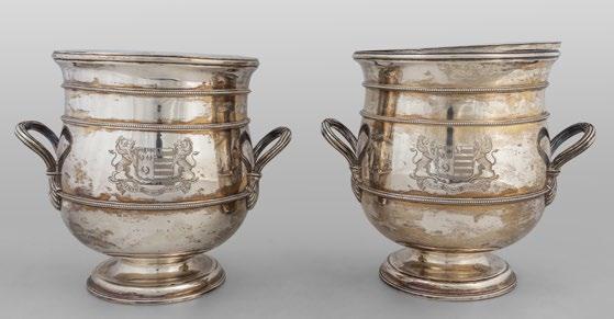 Coppia di grandi candelabri Giorgio IV a quattro luci in argento sbalzato, punzone dell’argentiere IW, Londra sec.XIX h.cm.56, Kg.7 ca. € 7.000/7.800