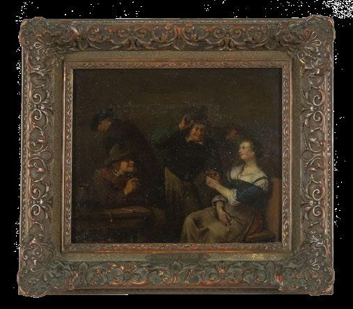 “Interno di taverna” olio su tavola, f.to in b. a ds. cm. 30x38 provenienza Londra, collezione A.Beresford scheda Dottoressa Raffaella Colace datata 2003 € 1.500/1.700