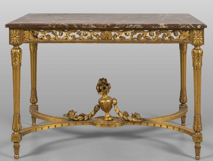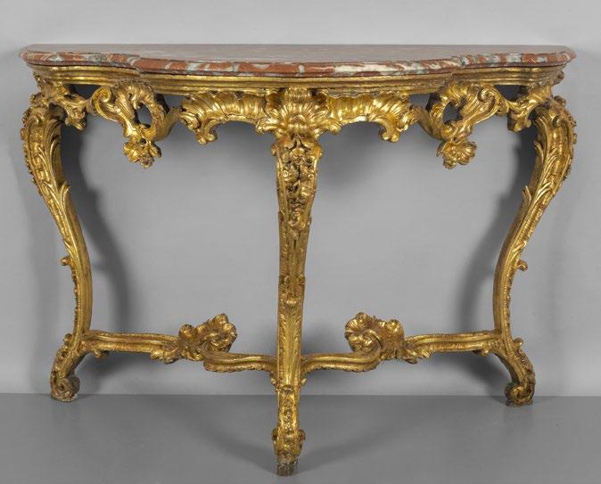 Console Luigi XV a tre gambe in legno intagliato e dorato, piano in marmo rosso, Italia Centrale sec.XVIII cm. 135x68 h. 91 € 3.500/3.900