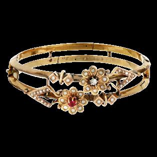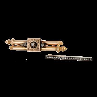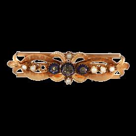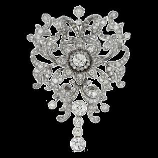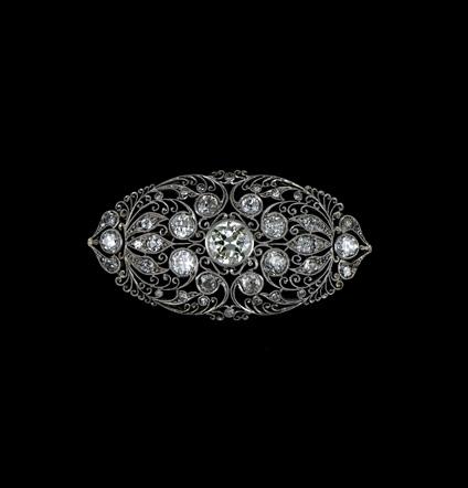 Silver and gold brooch, with natual pearls and rose cut diamonds.