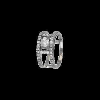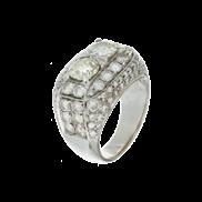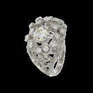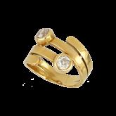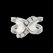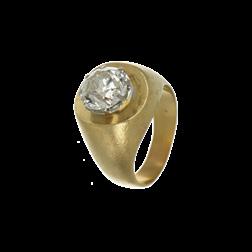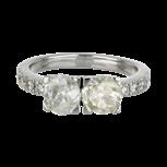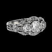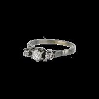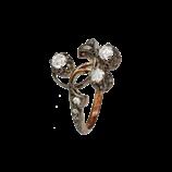 Anello di foggia antica, in oro ossidato e argento, con 3 diamanti taglio old mine per stimati ct 0,40 complessivi. Misura n. 20.