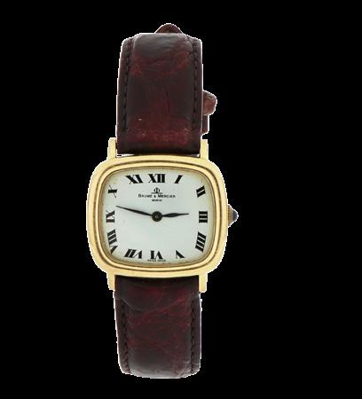 Fibbia originale in metallo dorato, cinturino in pelle, diametro 36 mm.