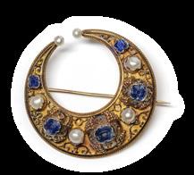 Fibbia in oro giallo raffigurante due serpenti che si incrociano, teste in turchesi.