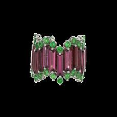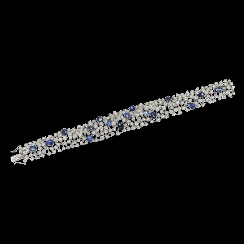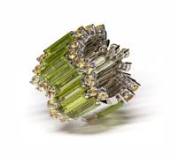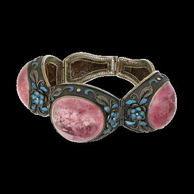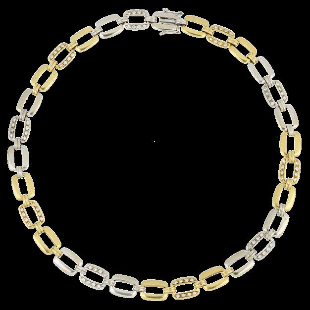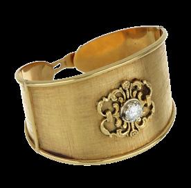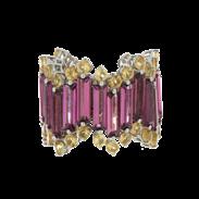 Bracciale in argento e oro giallo snodato, a 8 settori incisi e traforati a motivo di foglie ritorte con al centro altrettanti quarzi citrini.