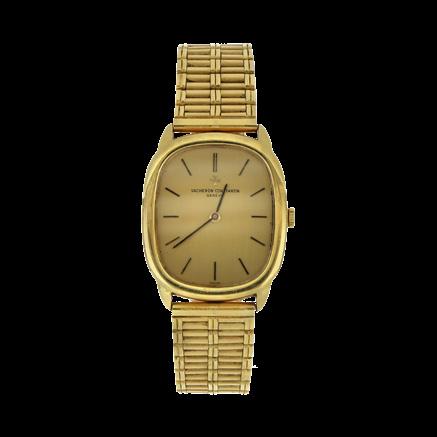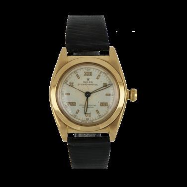 Rolex, raro orologio da uomo in oro giallo, ref. 6098, detto “Ovettone”, movimento meccanico a carica automatica, quadrante champagne, indici triangolari in oro, secondi al centro.