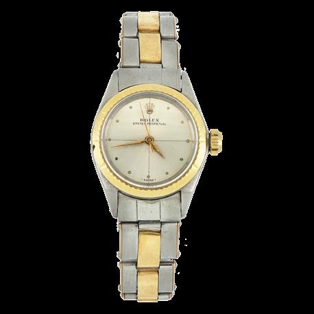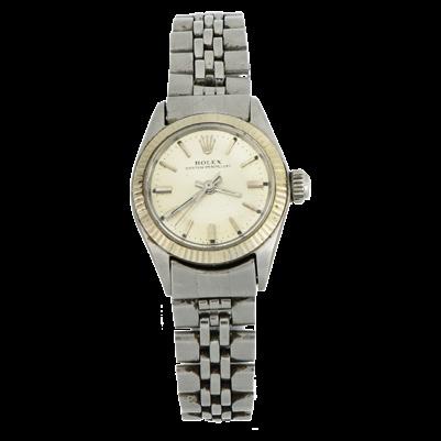 Rolex, modello AirKing, in acciaio con cinturino Oyster e quadrante bianco in smalto, numeri romani e indici in oro bianco.