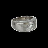 Anello di foggia antica, in oro ossidato e argento, con 3 diamanti taglio old mine per stimati ct 0,40 complessivi. Misura n. 20.