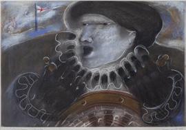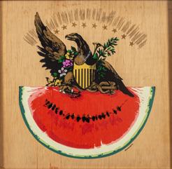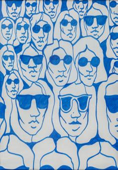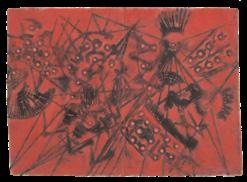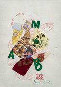 Stop the world I want to get off 1997 tecnica mista su carta cm 36x29 firmato, datato e titolato in basso a sinistra sul retro: etichetta della mostra 2001 "Flux natio us 2001" Galleria Caterina Gualco, Genova
