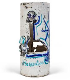 Hut Schachspiel (schwarz) 1990 tecnica mista su cappello a bombetta h cm 17 ø cm 30x25 firmato all'interno del cappello esemplare 1/5 all'interno del cappello: etichetta Archivio di Caterina Gualco, Genova