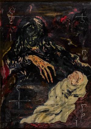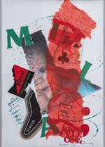 Stop the world I want to get off 1997 mixed media on paper 14,17x11,41 in signed, dated and titled lower left on the reverse: label of the exhibition 2001, "Flux natio us 2001" Galleria Caterina Gualco, Genoa