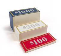 blocchetti di carta (100 $ cm 6,5x17x1); (500 $ cm 6,5x17x5), (1000 $ cm 6,5x17x9,5)