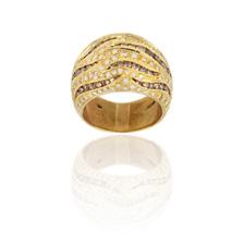 Anello a fascia squadrata in oro giallo, la parte superiore decorata con 3 file di diamanti taglio brillante per ct. 2,0 ca.