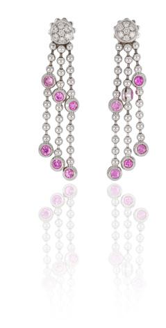 Il devant de corsage che presentiamo rappresenta uno dei pezzi importanti di questo leggendario corredo. Realizzato in oro rosso e platino, presenta un elegante design a fiocco con volute finemente lavorate, montate su perni a vite che permettevano di indossarlo sia come spilla che come ornamento per il corpetto. Tempestato da 67 diamanti di taglio antico per circa 18 carati totali, culmina in un diamante centrale di 6,20 carati stimati (12,12 x 12,23 mm, colore K/L, purezza VS1). Il pendente a goccia, sormontato da un diamante di circa 1,80 carati (J/VS2), presenta la vera gemma di questo gioiello: uno zaffiro naturale del Kashmir di 5,18 carati, accompagnato da certificato SSEF attestante l'origine Kashmir e l'assenza di trattamento termico. Gioielli