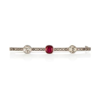 CUSI - 1960 circa, raro ed importante anello in platino, recante al centro un rubino di 4,90 ct di forma a cuscino accompagnato da certificato gemmologico svizzero SSEF attestante l’origine birmana e l’assenza di trattamento termico. Ottimo per vivacità e trasparenza. Firmato e punzonato.