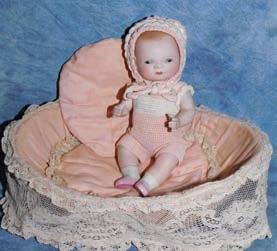 7” All original Effanbee Baby Tinyette w/ NRA dress tag, amazing coloring & condition $130.