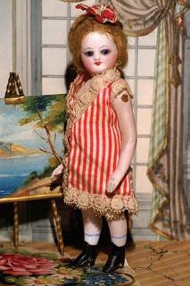 16) 5.5” Exquisite French Mignonette - Factory Wig & Dress, peg joints, slender limbs, lovely quality & smile. $1895