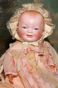 6) Rare & Exciting ‘Smiling Byelo’! - 13”c. head important fully signed rarity w Closed Mouth Smile, twinkling bl. sl. eyes, ‘oily’ bisque, sgnd. body in extravagant heirloom layers. One in a thousand! $3500