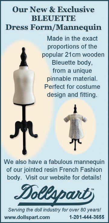 SARA BERNSTEIN DOLLS santiqbebe@aol.com • 732-536-4101 www.sarabernsteindolls.rubylane.com View Quality Dolls at affordable prices. 100’s of pictures and prices at my Ruby Lane Shop... ~Layaway Available~ Buy Directly - Call us at: 718.859.0901 www.rubylane.com/shop/kathylibratysantiques email: KathyLibratysDolls@gmail.com Kathy Libraty’s Antique Dolls 1) 23” Jumeau Open-mouth Bebe in Original Chemise $2,050 2) Stunning 24” Tete Jumeau Bebe in Darling Silk Dress and Jacket $2,995 3) Darling 20” Closed-Mouth Tête Jumeau Size 9 in Blue Silk Dress $4,200 17” Kestner X, Closed Mouth Pouty. Sweet soulful brown sleep eyes with the most wonderful pouty expression. Her original straight wristed Kestner body is pristine. She’s been redressed in the most feminine concoction of antique lace and ruffles. $2400 www.evelynphillipsdolls.com Paula Claydon 914-939-8982 Eyelash27@aol.com Member NADDA & UFDC 352 300 8983 lindatrinckesart.com | thetrinckescollection.com rubylane.com/shop/linda-ellen-brown-trinckes Left: 17” SFBJ 229 Rare Character. Set Brown Glass Eyes $1995. Right: 17” SFBJ 250. Blue Glass Eyes. Blue Velvet Suit $2995. In Antique Chair: 7.5” All Bisque Simon Halbig. Blue Stockings with 5 strap bootines $2400 Do you have a doll or small collection you want to sell? ADVERTISE IN THE EMPORIUM Send us a photo or a digital photo of your 1-3 doll(s) or accessories with a description and your check or credit card information. We do the rest!! Take advantage of this special forum; the cost is only $95 for a 2.4”w x 2.9”h ad space. For More Info, Contact: Louann at (872) 216-8842