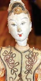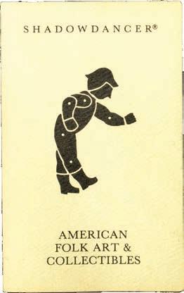 The Shadowdancer, Inc. booklet mentions they made hand-cut and hand-painted luminaries. They came in many different styles in 4-inchto-7-inch sizes. These mask-faced pieces are considered ornaments that could be displayed year-round. The purchase of a wooden stand was optional. They are reminiscent of early 19th-century ornaments.