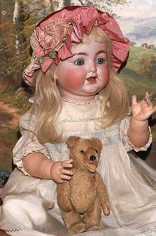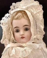 21” Kestner 168 E9, blue sleep eyes, HH wig, beautiful coloring & molding $425. 10” K * R 116A All Original Baby, blue sleep eyes, mohair wig $750.