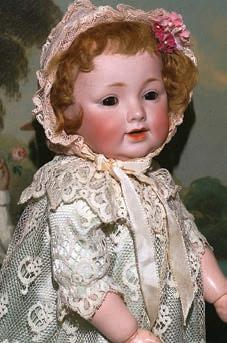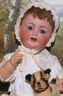 17” K * R 122 Toddler w/ blue sl eyes, sweet expression, antique clothing $495. 15.5” K * R 121 Baby All Original, blue sl eyes, mohair wig $320.