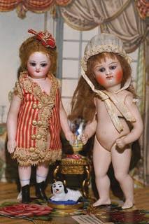 A beginning doll collector can build a collection of these artistically created figures without the outlay of money required for German bisque character dolls or expensive French bisque fashions or Bebe dolls.