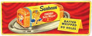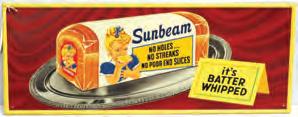 Ful-O-Pep Feeds; various animal signs; Deere vehicles; seed corn signs including 10’ Cokers; MISC petroleum-related; pop & drink related; country store; Indian Trail Peru-Greenville; neon Champion Spark Plugs; 53” Oldsmobile Service; set of 5 different Sunbeam Breads; plus many more;