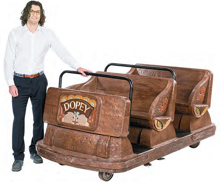 for $36,000. This particular cabin hummed into service at the park in 1984; its doors still open and close. Also from Disney World, this park-used vehicle from Snow White’s “Scary Adventures” (it’s Dopey’s car!) sold for $33,600; the ride took guests through