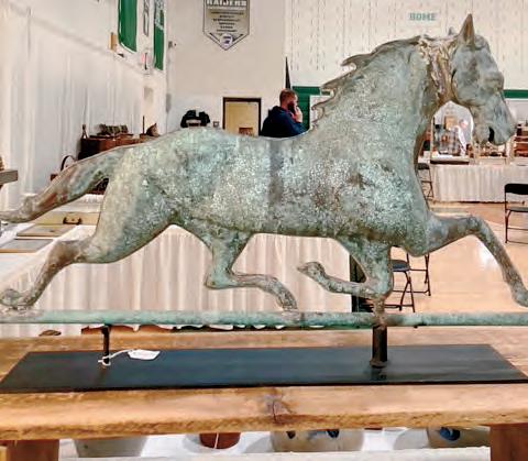 Primarily a country show, 41 dealers come from eight states to display their wares. Most of the dealers are from Pennsylvania, with items that are fresh to the market, found at local country auctions or from longtime collections. Bluedecorated stoneware, redware, folk art, butter prints, wooden ware, early iron, lighting, quilts, samplers,