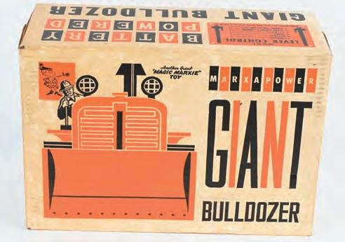 The Marx battery-operated 18-inch-long Giant Bulldozer, new/old stock in its sealed original box, sold for more than 12 times the high estimate at $4,920.