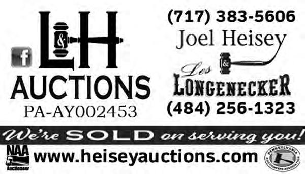 antiquesandauctionnews.net Antiques & Auction News — November 11, 2022 - - 11 R068587 call 1-800-800-1833, Ext. 6022 or place your ad online antiquesandauctionnews.net F063435 ATTENTION! Get the Word Out! Advertise Your SERVICE OR SUPPLIES in the Classifieds! Call 1-800-800-1833, x6022 or www.antiquesandauctionnews.net HARDY’S AUCTION SERVICE AH000010L 717-432-8246 or 717-432-3779 R089978 HAAR’S AUCTION MON. EVENING – NOV. 14, 2022 AT 6:00 P.M. Located at 185 Logan Rd. (Rt. 15), DILLSBURG, PA 17019 TOYS – FURNITURE – COLLECTIBLES –MOWERS - TOOLS – ETC. Restaurant & AUCTION DOORS open at 5:00 p.m. Sale starts at approximately 6:00 p.m. with 2 auctioneers on porches if weather permits (1 tools/box lots, 1 furniture); Stage auction begins at 6:30 p.m. (smalls/collectibles). Consignment sale of local estates to include real nice furniture from local estate in Camp Hill, Mechanicsburg; Antiques; ornate hutches & cabinets; area rugs; beds; chest of drawers; dressers; Unique table w/chairs; Bedroom suites; Snow Blowers; snow plows; push mowers; rototillers; generator; power washer; salt dog; Stihl backpack leaf blower; Cub Cadet weeder; Troy-bilt chipper/shredder; Weed whackers; trimmer extensions; power tamper; table saw; edgers; TOY AUCTION ON STAGE: To include Matchbox, Hot Wheels, trains & accessories; plastic Ville; original cast-iron fire truck; Buddy L ladder truck; Marx flying fortress; Matchbox G-3 set; child’s tool box; vintage tricycle; Walt Disney ski jump target game; Big Bang cannon; Allied Van lines truck; Ertyl; Nylint; Buddy L; Tonka; Johnny Lightning; Days of Thunder; Tootsie toys; Nascar; Red Line Hot Wheels; Lesney matchbox; Yesteryear; Star Wars; GI Joes; Marvel; DC Action Figures; nice household; dishes; real nice collectibles; tools; primitives; box lots; Terms: Cash, good PA Check, credit card w/processing fee, ATM on-site. Office number 717-432-8246 leave a message. Check www.haars.com for updates. NEXT AUCTION MONDAY EVENING, NOVEMBER 21, 2022, 6:00 P.M. LENOX, WEDGEWOOD, BOYDS BEARS, BUTTERFLY COLLECTION, REAL NICE COLLECTIBLES. R090019 VISIT OUR WEBSITE WWW.HOWARDPRODUCTS.COM OR CALL (800) 266-9545 TO FIND A DEALER IN YOUR AREA FOLLOW US! • Instant Action! Amazingly fast and easy to use • Silver Polish cleans and polishes all ornamental silver, silver plating, stainless steel • Copper Polish cleans and polishes all ornamental copper, brass, and bronze • Special Pine-Ola blend retards tarnish for a long-lasting shine • No harsh chemicals or abrasives, and gentle on hands