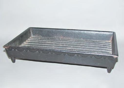 A unique cast-iron broiling pan sold for $6,200 on Oct. 1 at Horst Auction Center in Ephrata, Pa. Incised underneath “P DERR,” the footed pan, measuring 12.5 inches