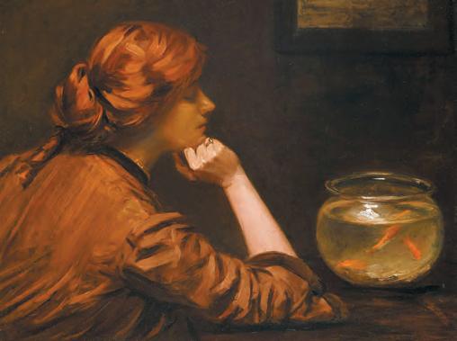 The painting, “An Idle Moment,” is by John White Alexander (1865-1916).
