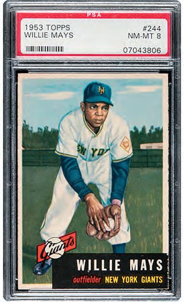 The 1953 Topps Willie Mays graded Near Mint-Mint 8 realized $186,000.