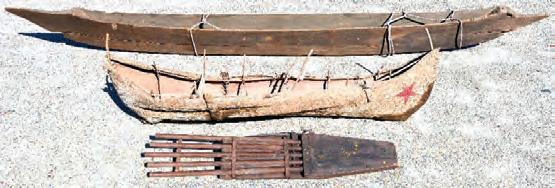 (2) Original late 19th Century Canoes Including an Elm Bark Native American Canoe, Chestnut Dugout Canoe, Native American Artifacts